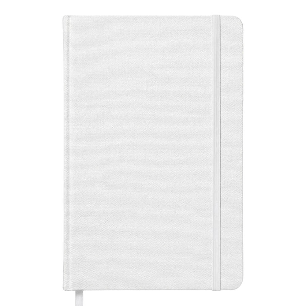 Notizbuch mit Hardcover aus R-PET. Elastikbandverschluss und Lesezeichenband aus Satin