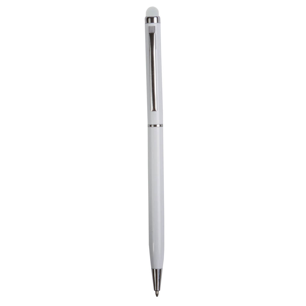 Twist pen with metal clip and barrel, and matching touchscreen rubber tip