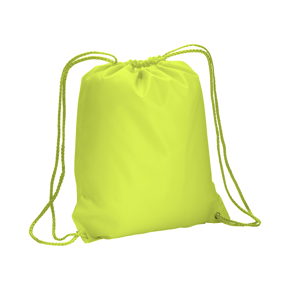 Fluorescent 210T polyester backpack with drawstring closure and reinforced corners