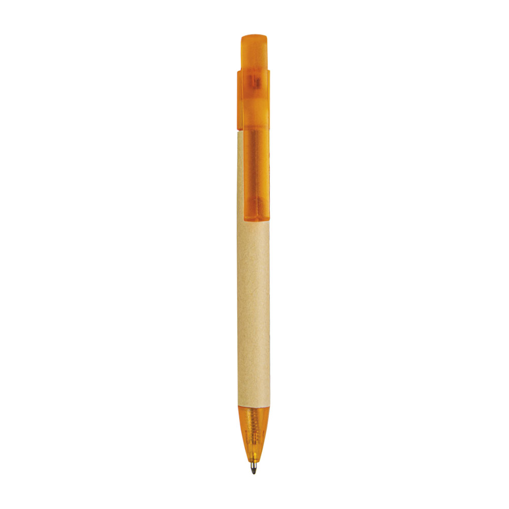 Push button ball pen with recycled carton barrel and plastic fittings