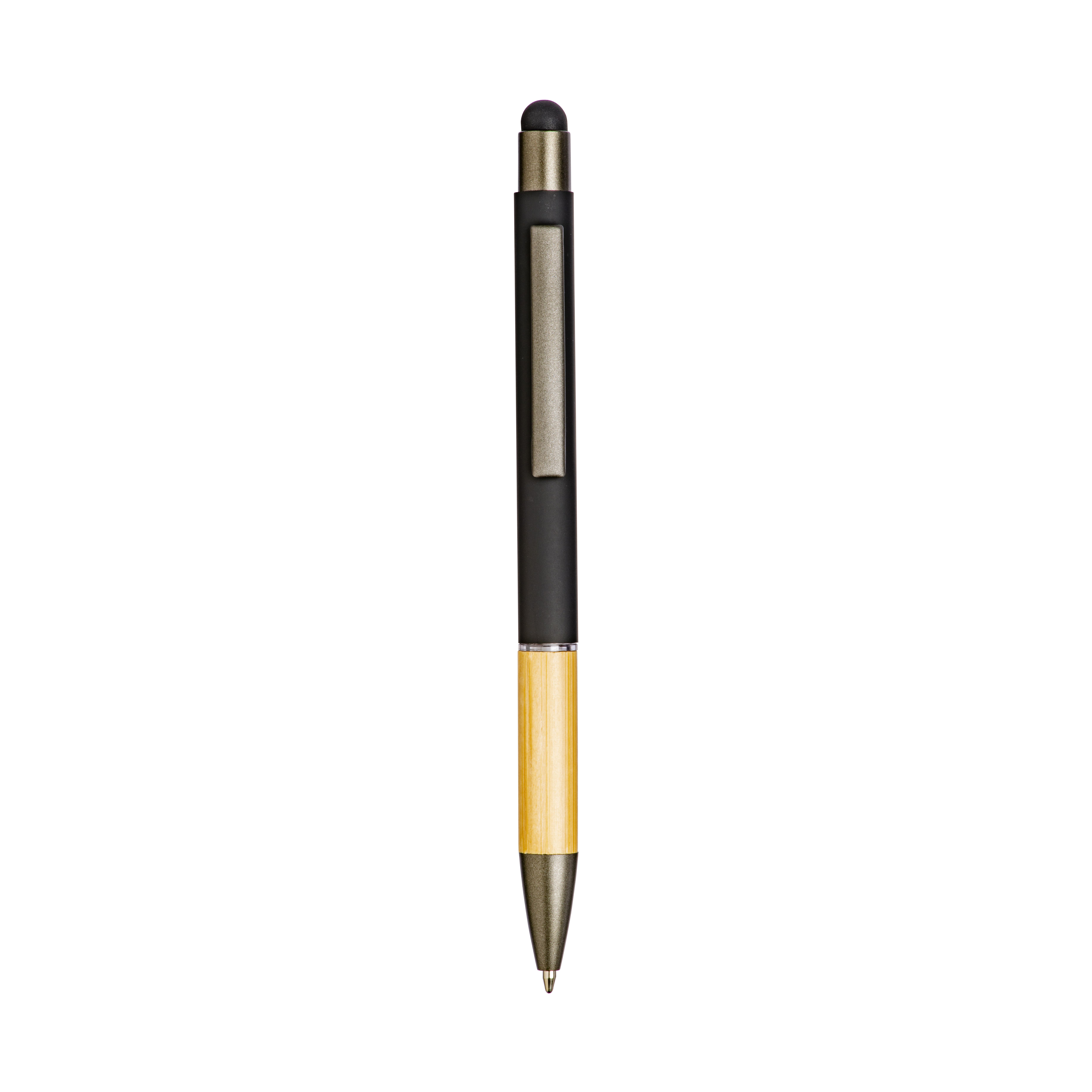 Push button aluminium ball pen with bamboo handle and color touch matching with the body of the pen