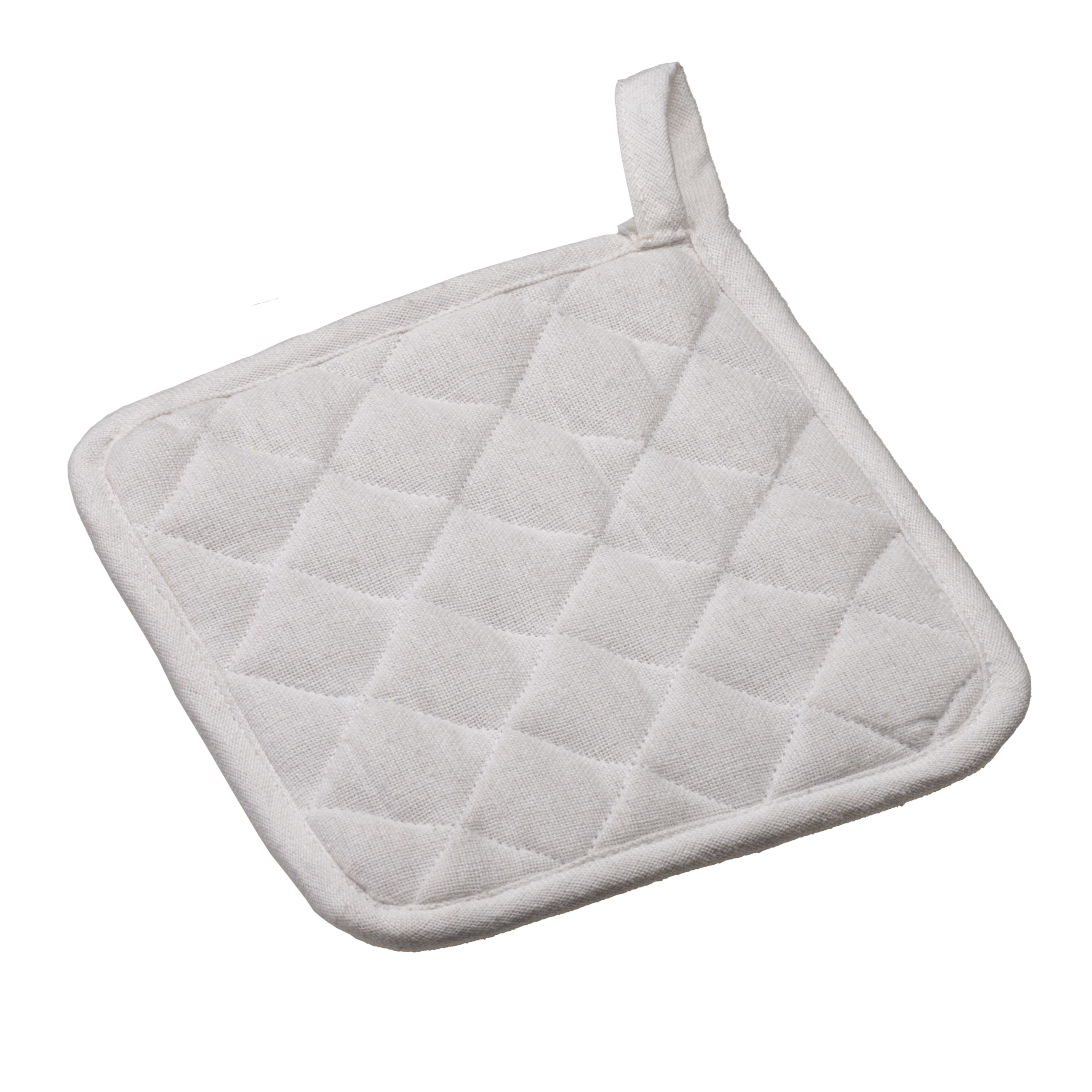 Agarradera de cocina de algodón reciclado con asa para colgar, un lado acolchado y el otro liso, especialmente diseñado para impresión