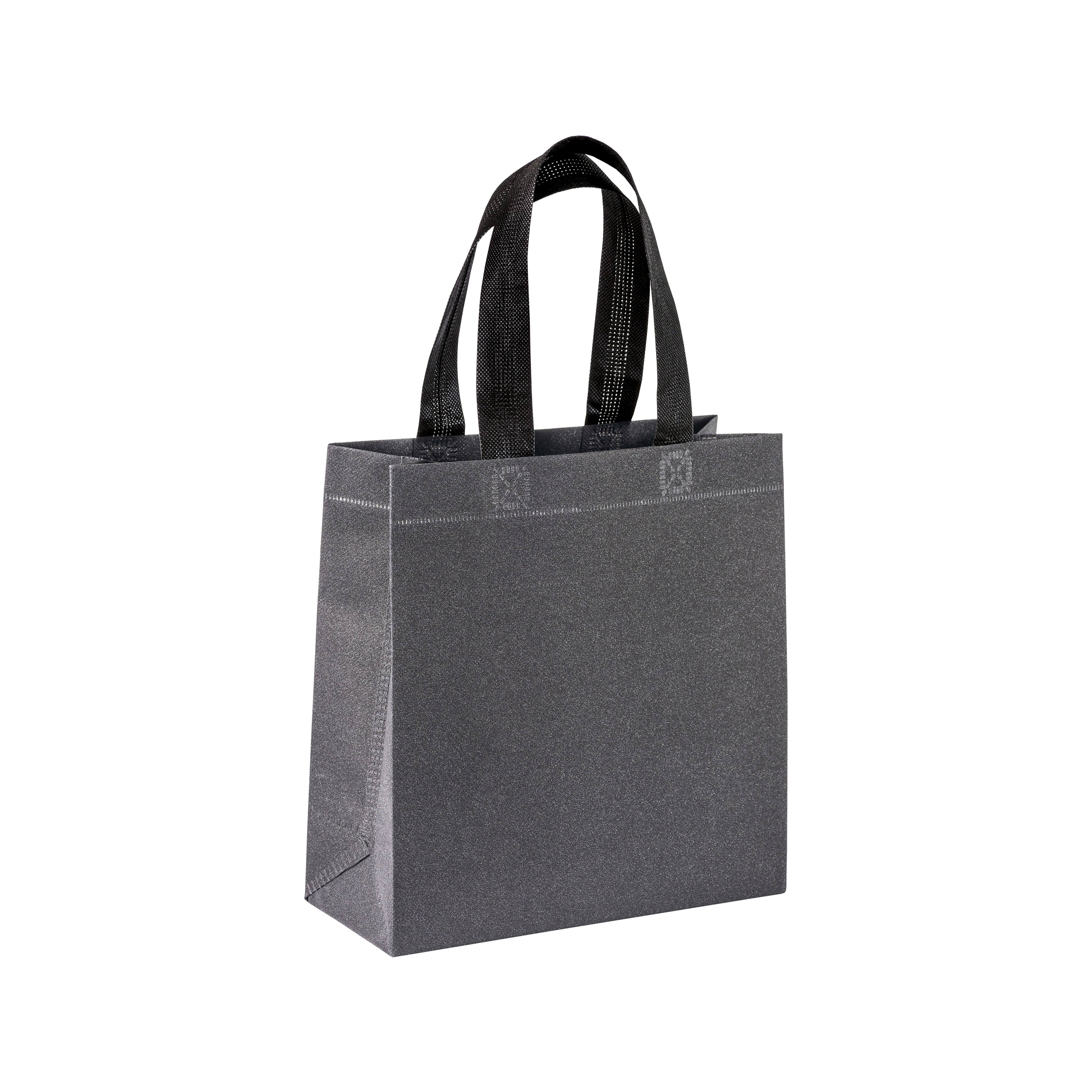 Shopper mini avec soufflet en TNT laminé glitter 100g/m2 thermosoudé, anses courtes