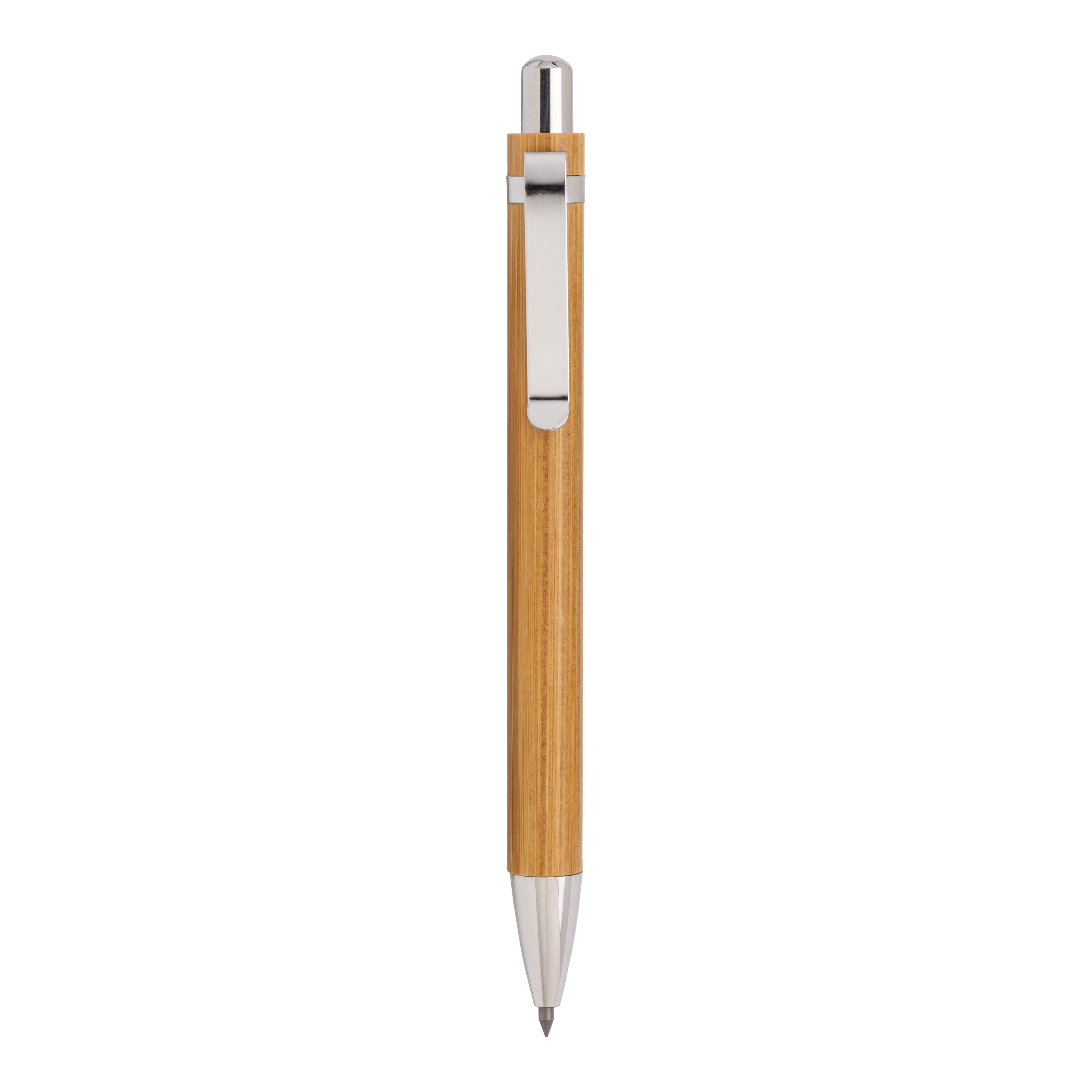 Matita a lunga durata in bambù, con clip in metallo. Questa penna ha una punta in lega metallica, che mentre si scrive, ossida la superficie della carta senza lasciare residui. Ha una durata quasi infinita ed è un'alternativa sostenibile alla penna tradizionale.