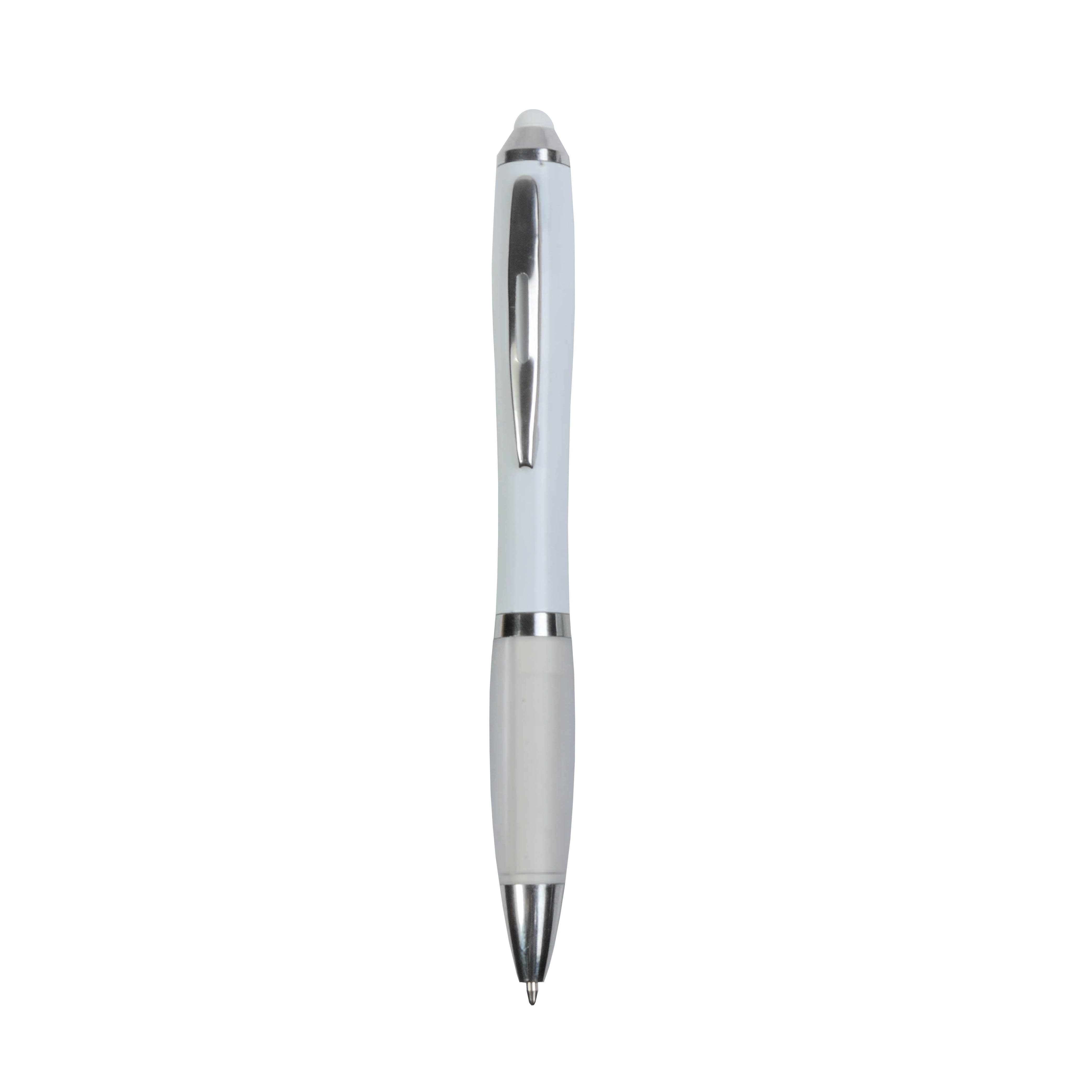 Penna twist in plastica con fusto bianco, impugnatura gommata colorata in tinta con il gommino per touch screen